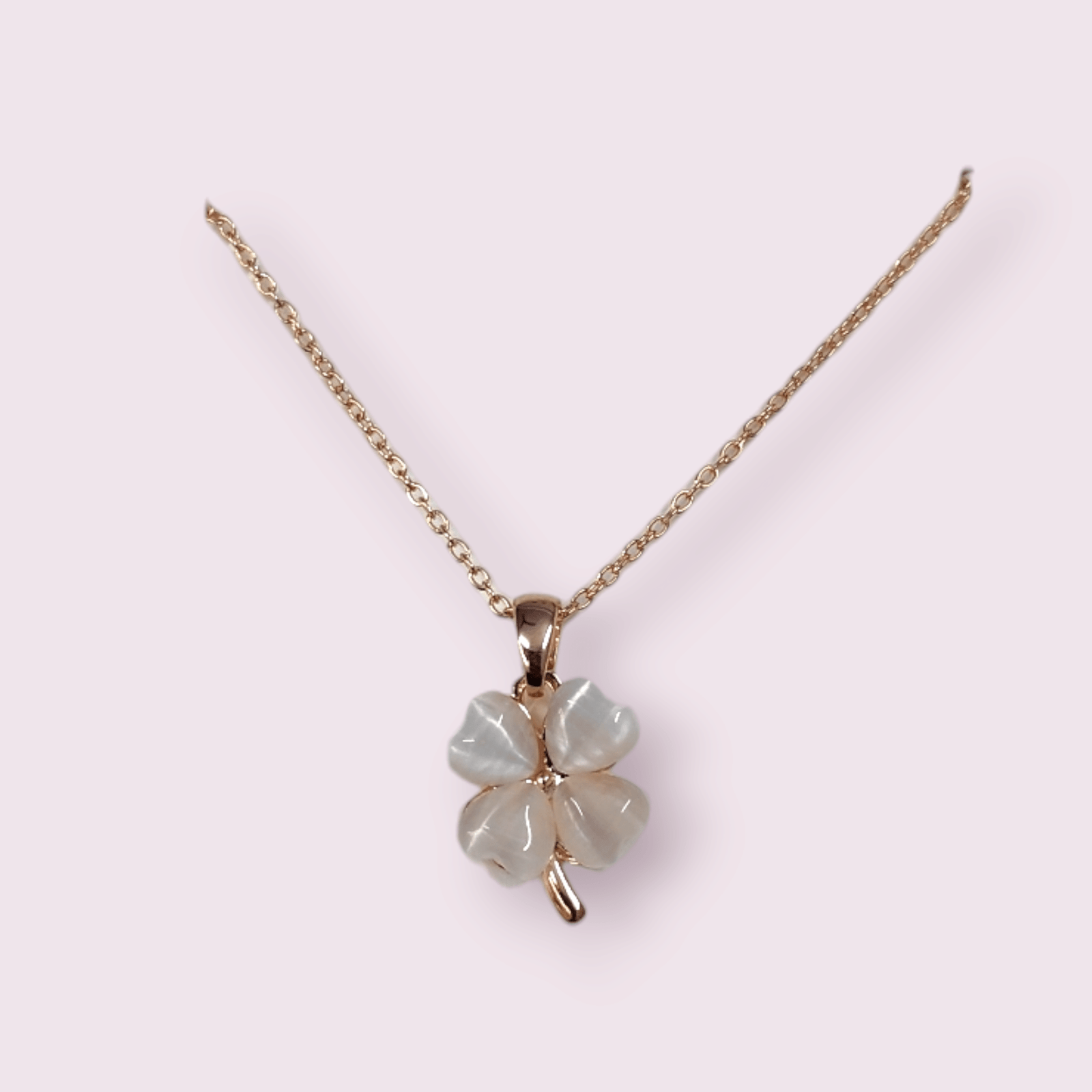This delicate four-leaf clover pendant is designed to embrace good fortune, making it a meaningful accessory for any occasion. Featuring luminous petals, it captures the essence of elegance and charm.